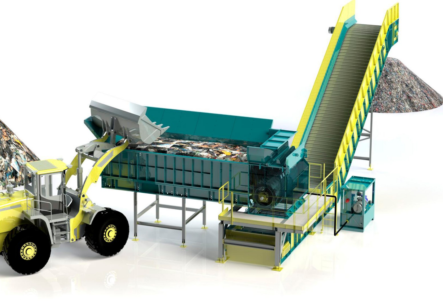 The system employs a rotating drum with teeth and movable knives to compress and tea bags open. Feed rate control and temporary storage area provided by a robust chain conveyor in the feed section. Major Benefit: By avoiding shredding, the bag opener maintains the original volume and quality of valuable recyclable fractions.