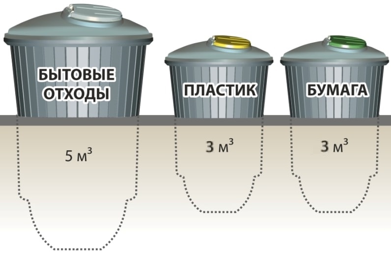 Круглогодичная выгрузка мусора. Нахождение 2/3 части контейнера под землей дает постоянный температурный режим (не будет смерзаний и слипаний отходов зимой)