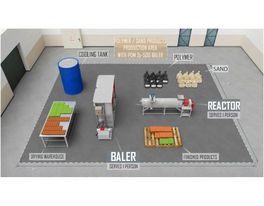 Equipment Layout for Polymer-Sand Products Production with the PGM.2U-500 Press: