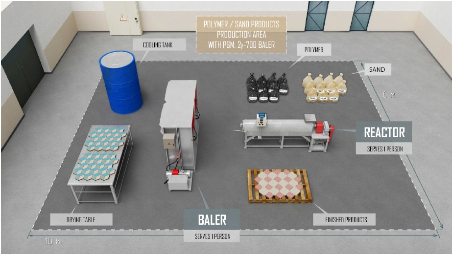 Equipment Layout for Polymer-Sand Products Production with the PGM.2U-700 Press: