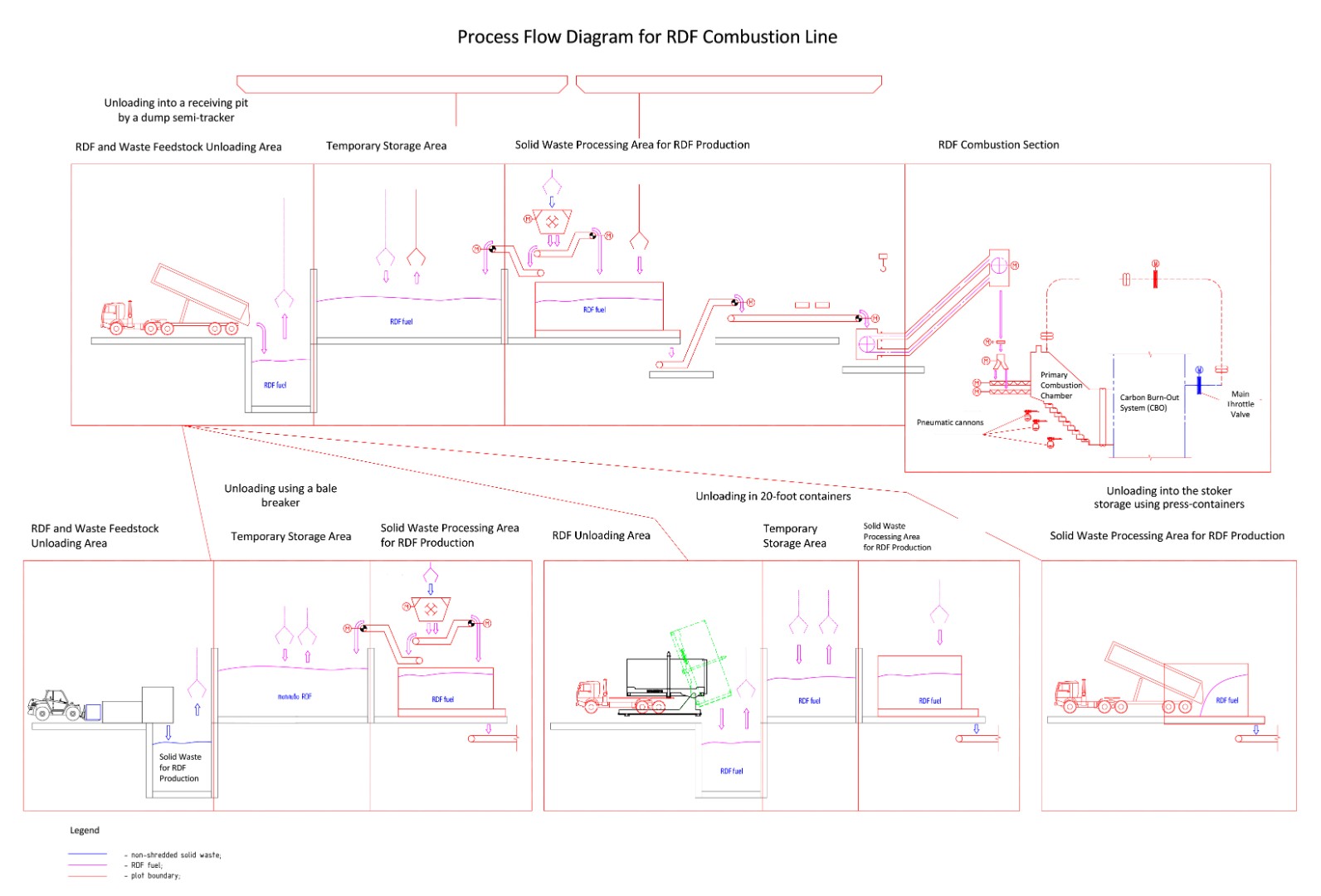 | Requirement of the Line | Combustion of coarse-fraction and moist (up to 40% humidity) RDF fuel. |