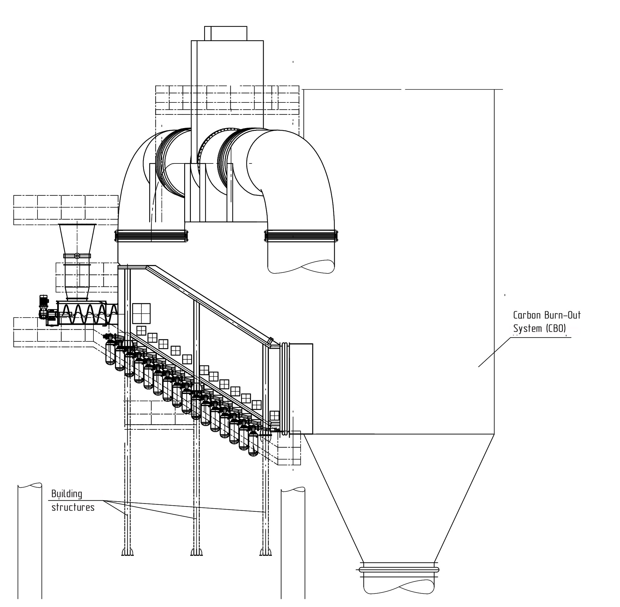 The construction of an RDF combustion line for cement production involves the use of an integrated stepped grate furnace (pre-combustion chamber), designed for the thermal utilization of alternative fuel (RDF fuel) with a low level of preparation. This line is integrated into the technological process of clinker production.