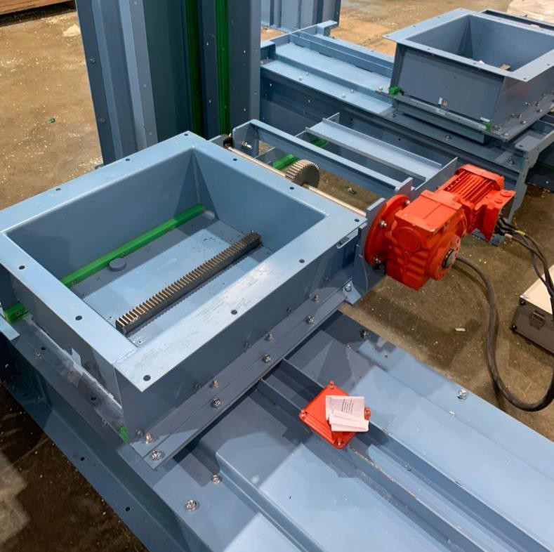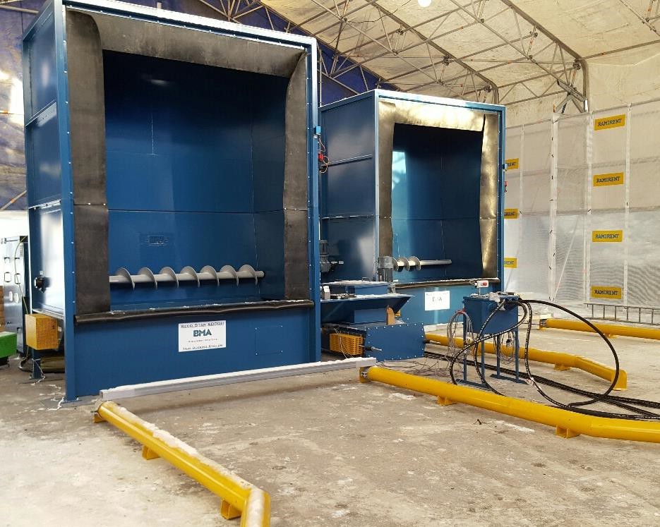 The scraper conveyor has a specialized design for interfacing with the DOC station and is fully enclosed. It is designed to collect and transport AT from two DOC stations to the separation unit.