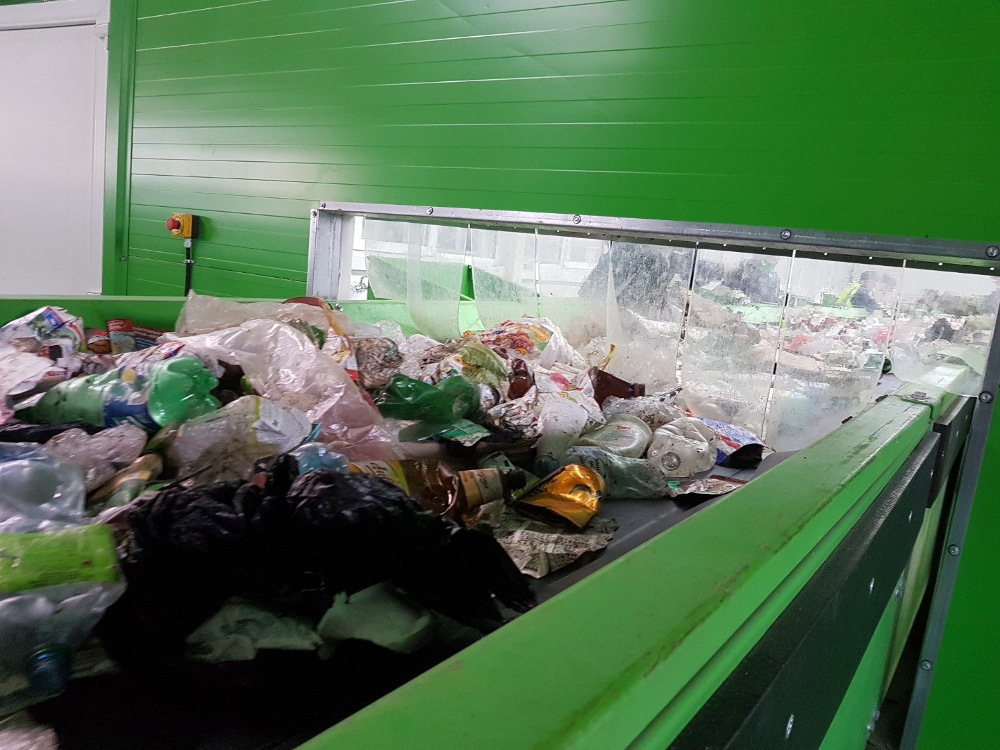 Residue Handling. Residual waste (non-recyclable fraction) is conveyed via apron conveyor to: