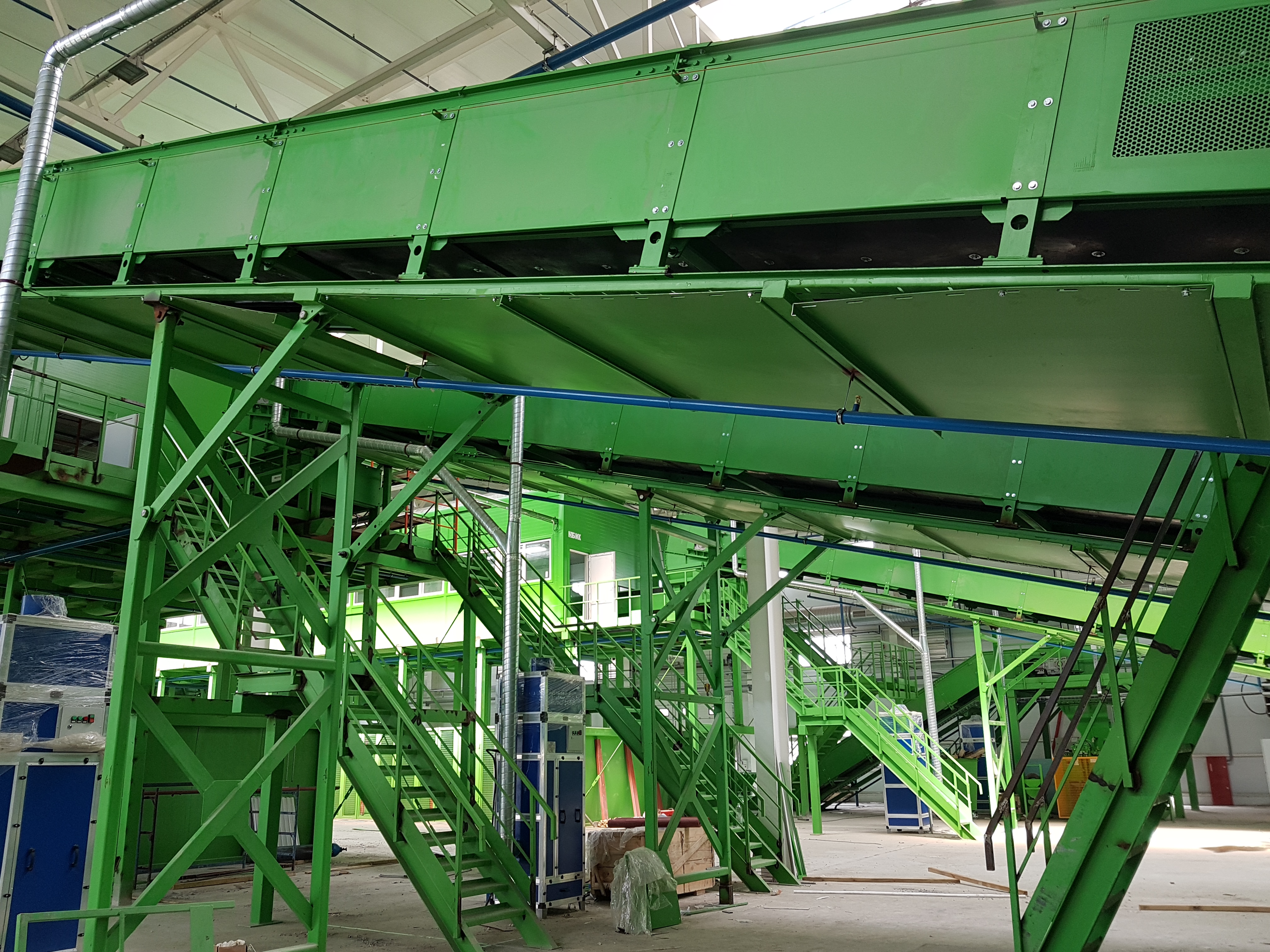 Conveyor systems: frequency-controlled drive motors (speed adjustable between 10–20 m/min). Speed adjusted by operators based on waste composition/volume.