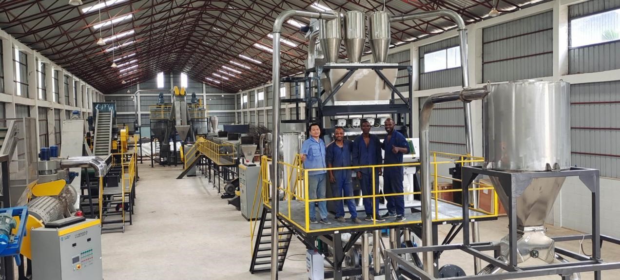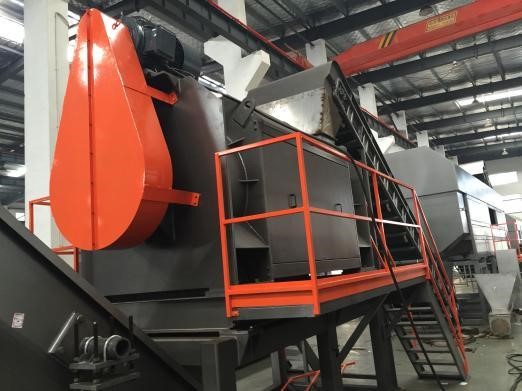 Flakes sorting, blending and packing section. For high-grade PET flakes applications, automatic optical flake sorting unit is an indispensable module.The unit including automatic flake sorting eddy curent and pipe-type metal separator. These devices would maximize the removal of impurities before packing to ensure the stability of flakes quality. Flake with low impurity content and stable quality is a standard to measure PET recycling process. For the various quality factors during PET recycling process, blending equipment and on-ine detection device especially designed can ensure the various quality indicators to meet criteria and to make sure nosinale parameter exceeding the reauirement so that the quality of the flakes will be quaranteed. 0n-line weighing device can monitor real-time production flow. Packing unit by taking advantage of the shaking system specially designed, can make the packing of the flakes reach the fix weight and maximize bulk density which areatly reduce the packing and transportation costs.
