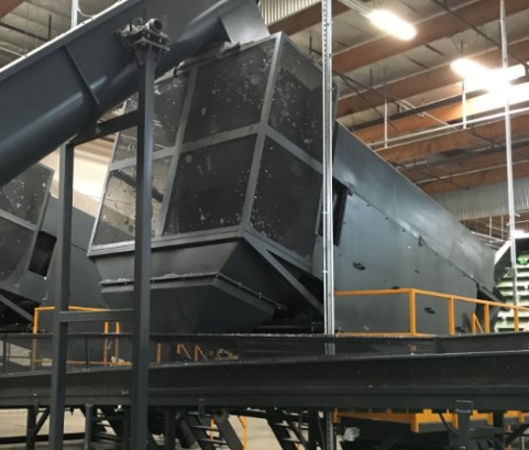Trommel screen. The effect is to break up the lumps, sift out small garbage and part of the bottle cap.