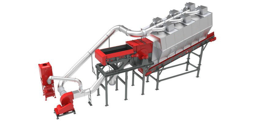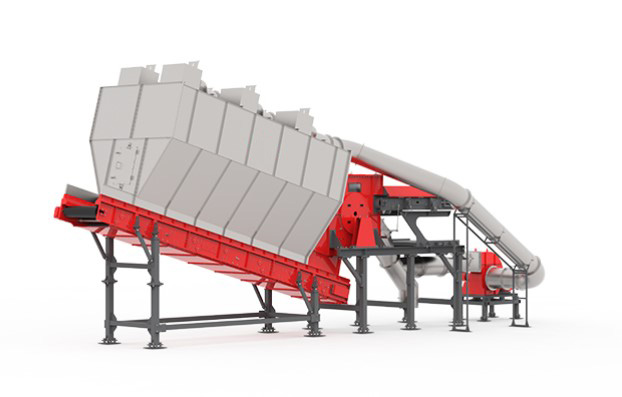 The SFX800 Air Separator utilizes an adjustable airflow as the sorting medium. It carries light materials (feathers, paper, plastic bags, fallen leaves, etc.) a significant distance, either vertically or horizontally, while heavier materials fall or are thrown a shorter horizontal distance.