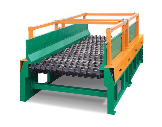 A stationary rotary screen (trommel) designed to remove fine fraction and organic material from a mixed MSW stream. Throughput capacity of up to 20 tons per hour.