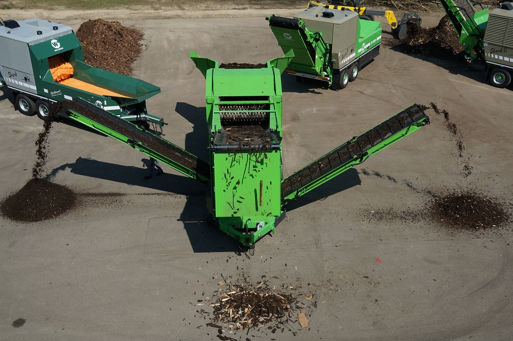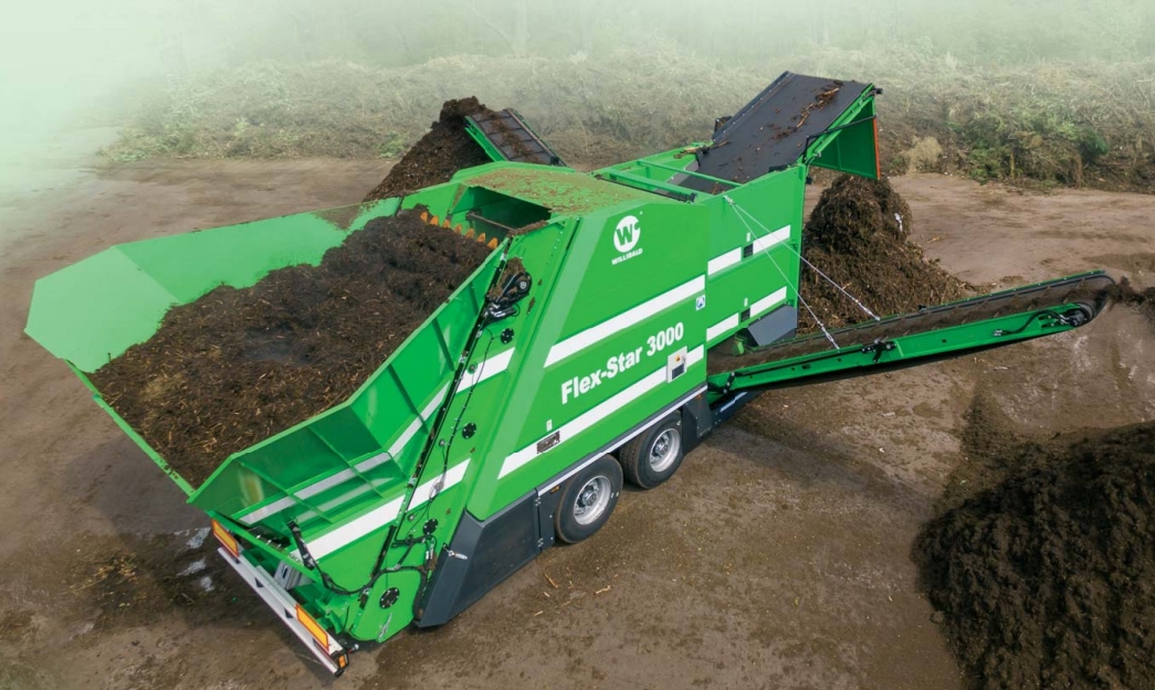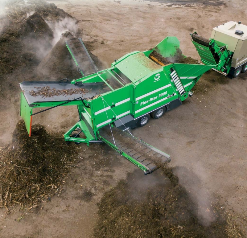 The Flex Star 3000 series can process the following materials: biomass, compost, shavings, wood chips, bark mulch, compost material, and humus. Throughput capacity of up to 200 m³/h.