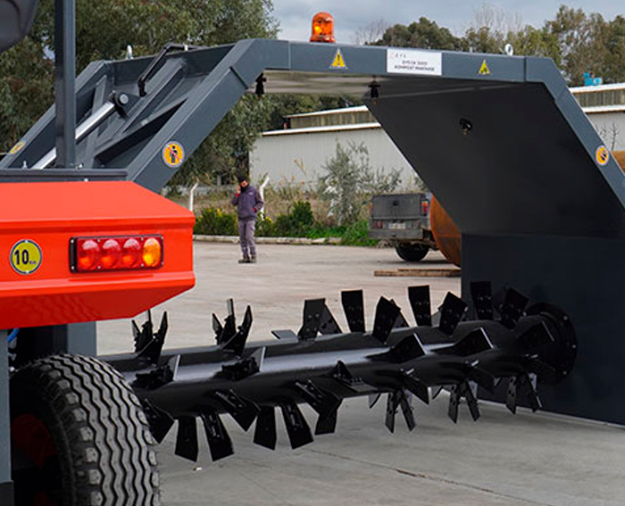 The GK3000 Mounted compost turner is designed for the production of high-quality, sanitized compost from solid and semi-liquid waste of animal and plant origin.