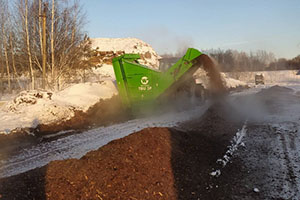 Gałęzie i konary będą kierowane do rozdrabniacza, gdzie przekształcą się w zrębki, które następnie wymiesza się z liśćmi lub trawą i uformuje w pryzmę. Następnie surowiec ten będzie przez określony czas mieszany za pomocą przerzutnika kompostu (model TBU 3P niemieckiego producenta Willibald GmbH), dzięki czemu będzie nasycał się tlenem, a proces kompostowania przyspieszy. Po zakończeniu reakcji kompostowania, czyli gdy odpady roślinne ulegną rozkładowi, gotowy kompost załaduje się do przesiewacza bębnowego, gdzie odsiana zostanie frakcja drobna. To właśnie jest gotowy produkt. Pozostały materiał zostanie ponownie załadowany w celu dalszego rozkładu.